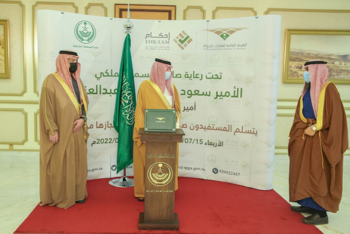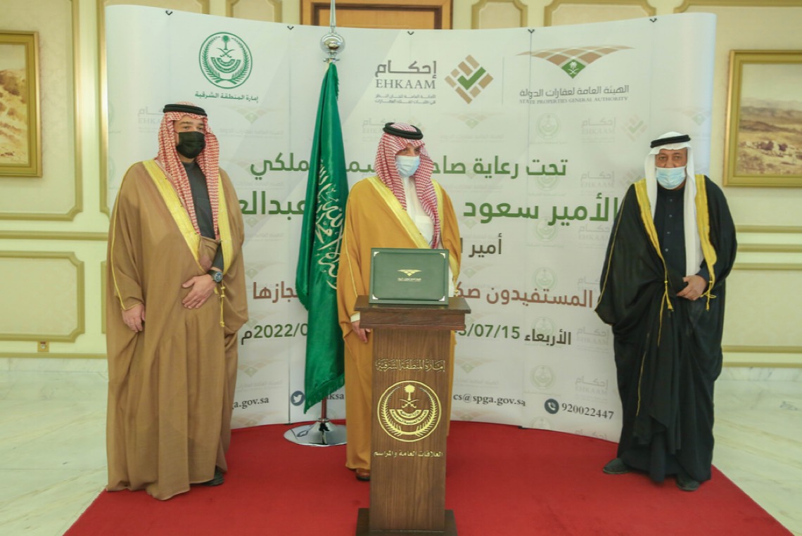 سلّم الأمير سعود بن نايف بن عبدالعزيز أمير المنطقة الشرقية، بديوان الإمارة، اليوم، عددًا من المواطنين صكوك عقاراتهم بعد استكمالها من قبل لجان النظر في طلبات تملُّك العقارات ”إحكام“، بحضور محافظ الهيئة العامة لعقارات الدولة إحسان بن عباس بافقيه.