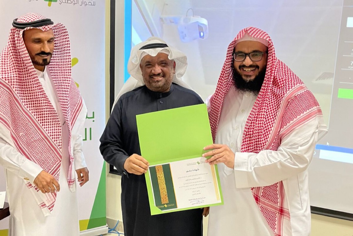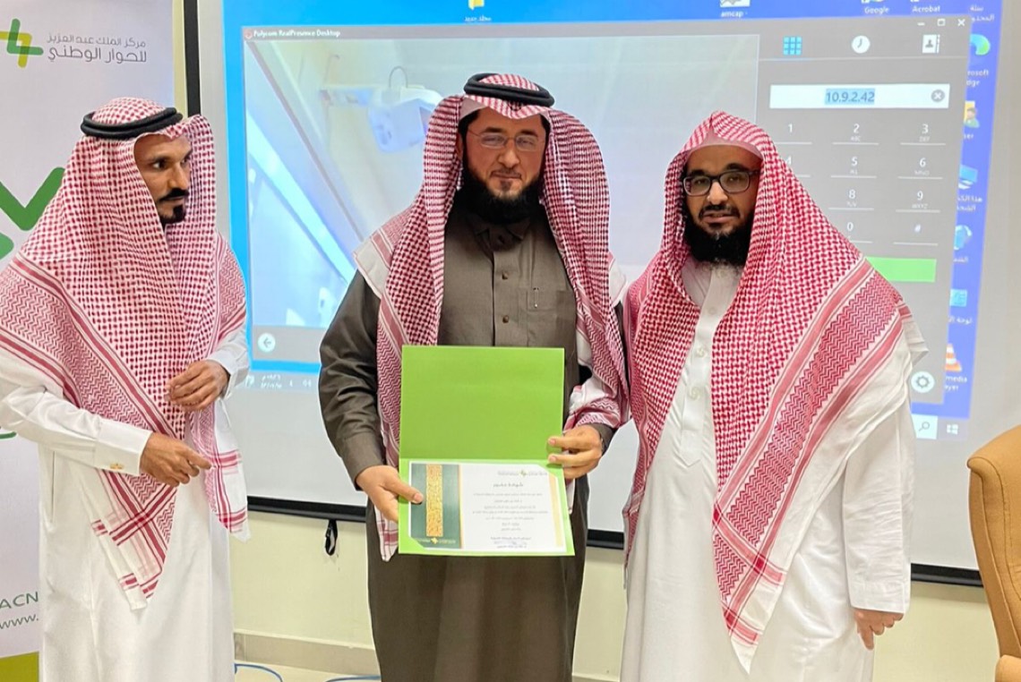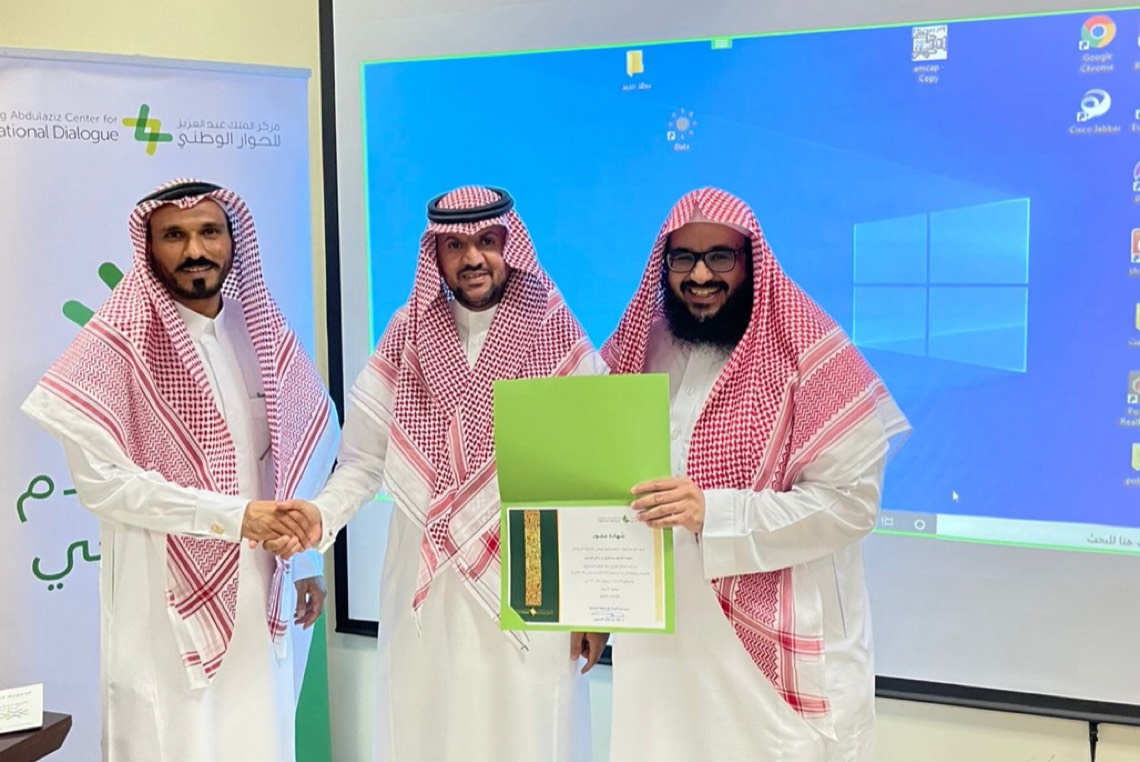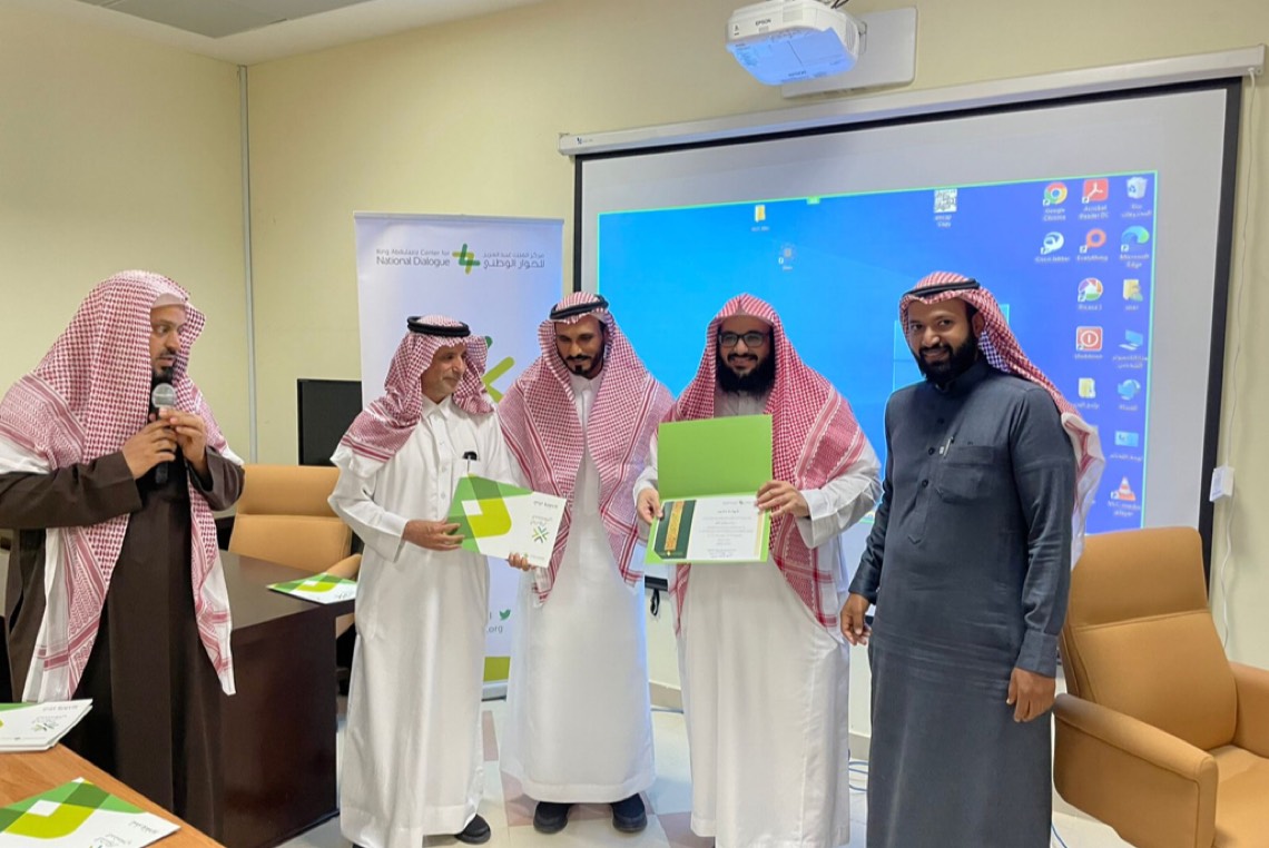 وفي ختام البرنامج قدم عميد كلية الشريعة فضيلة الشيخ الدكتور ياسر الربيع درعا تذكاريا لمركز الحوار الوطني فرع المنطقة الشرقية شكرا لهم على جهودهم المتألقة في خدمة وطننا المعطاء ثم تم تسليم المتدربين شهادات حضور البرنامج والذي استغرق عشرون ساعة في أربعة أيام، ثم أخذ الجميع صورة جماعية بهذه المناسبة.