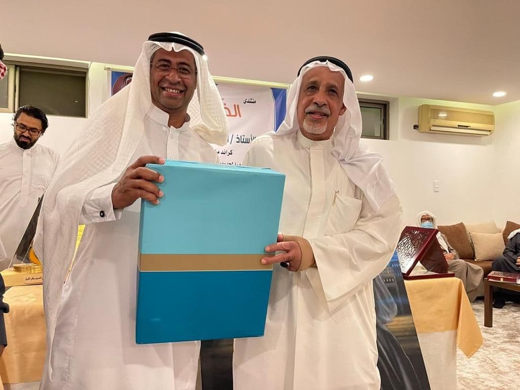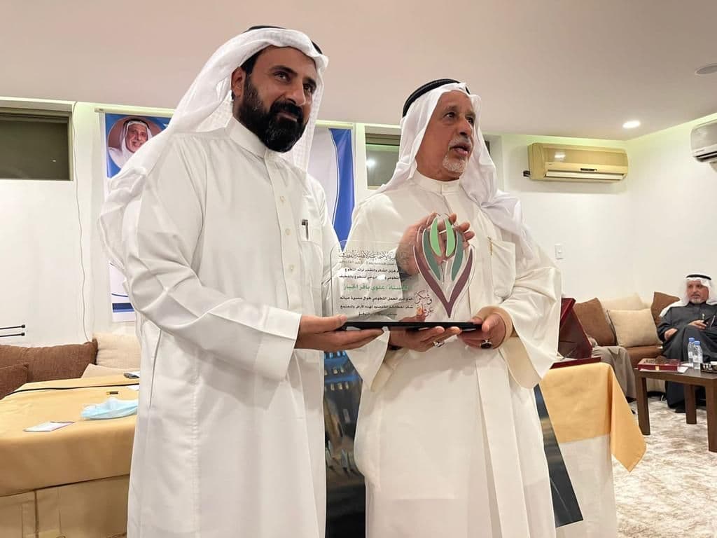 امين الزهري رئيس التنمية الاجتماعي بالقطيف والذي قدم درعا تذكاريا للأستاذ كمال المزعل