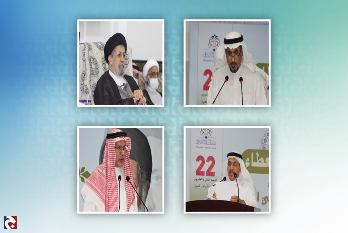 وعبر عريف الحفل زكي البحارنة عن هذه المناسبة بالقول: ”نشهد مناسبة وطنية تاريخية هي ذكرى تأسيس الدولة الحديثة في وطننا الغالي المملكة العربية السعودية، وفخر لهذا المجتمع ممثلاً بهذا المنتدى الرائد أن يحتفي بصناع المبادرات الفعلية التي تؤسس للمستقبل الناصع ابتداءً من تأسيس الدولة الحديثة وصولاً إلى صناع مشاريع البناء الفكري والاجتماعي التي تتكامل مع متطلبات الدولة المعاصرة وتتواءم مع تطور الوعي العام“.