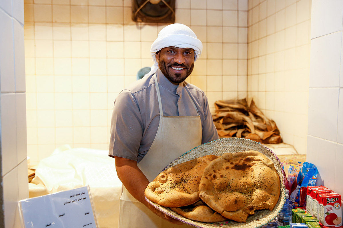 ويحرص الكثير من زوار فعاليات مهرجان تسويق تمور الأحساء المصنعة "ويا التمر أحلى 2022"، والذي تنظمه أمانة الأحساء بشراكة استراتيجية مع هيئة تطوير المنطقة الشرقية وغرفة الاحساء ، البحث عن دفئ التنور ورائحة المزارع المحملة بكرب النخيل بحثا عن (الخبز الأحمر) الذي يعتبر احد اهم الاكلات لأهالي محافظة الاحساء وزوارها على مدار العام .
