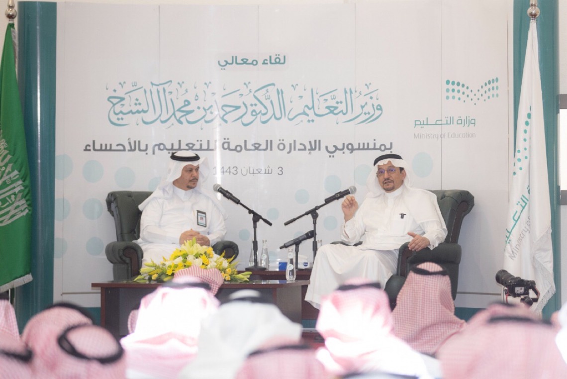 التقى وزير التعليم، د. حمد بن محمد آل الشيخ، اليوم الأحد، منسوبي وقيادات التعليم بمحافظة الأحساء.