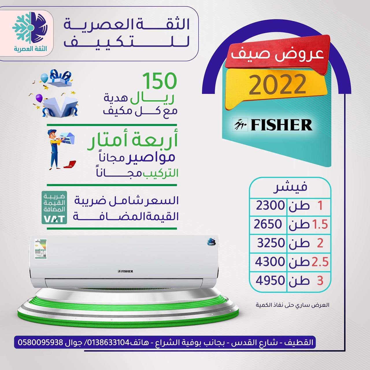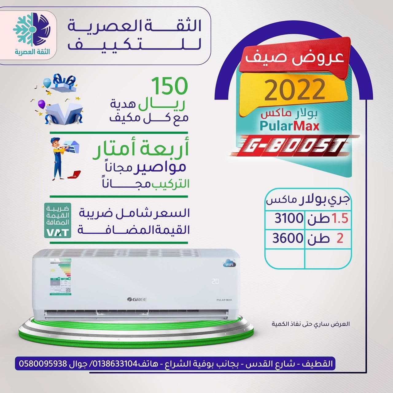 مع جميع المكيفات هدية نقدية 150 ريال علي كل مكيف