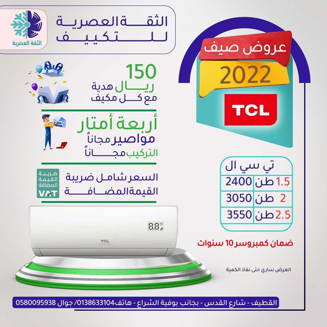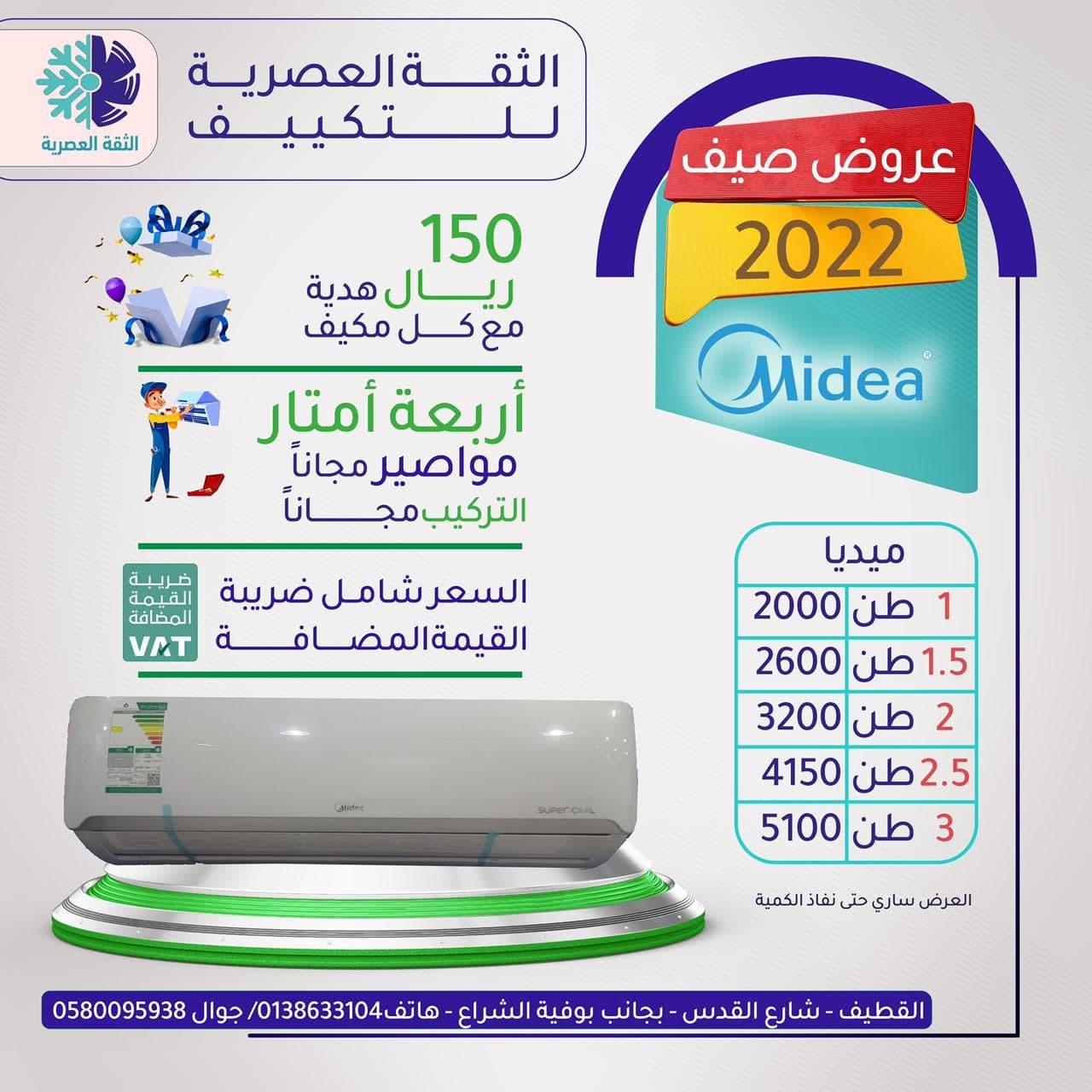 أقوى عروض الصيف 2022 مع كل مكيف هدية نقدية 150 ريال في «الثقة العصرية للتكييف»