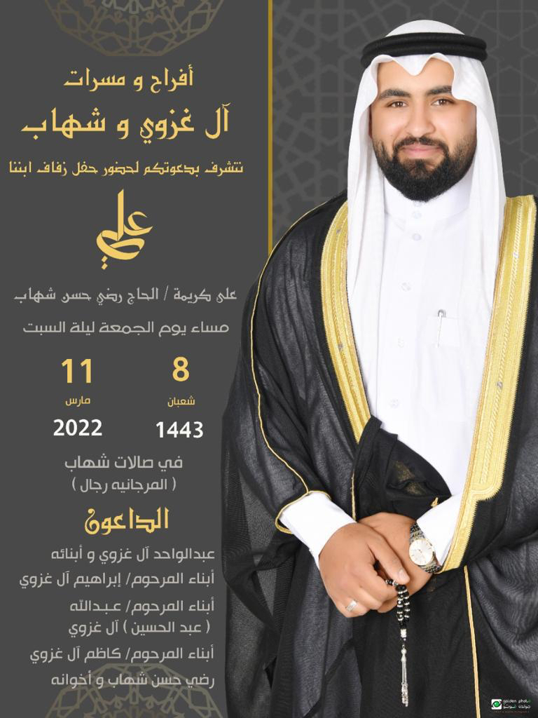 تحتفل عائلة آل غزوي وشهاب في التوبي مساء يوم الجمعة 8 شعبان بزفاف الشاب علي عبد الواحدآل غزوي على كريمة الحاج رضي حسن شهاب في صالة شهاب المرجانية وسط فرحة الأهل والأصدقاء ومحبي العريسين.