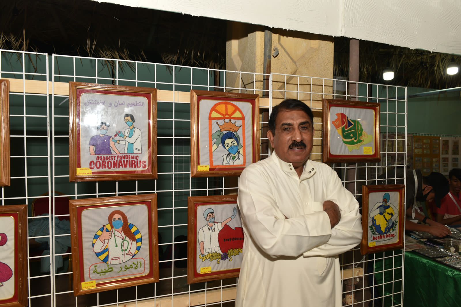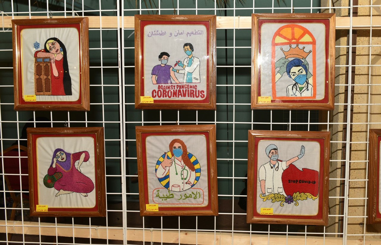 وذكر أنه استغل فترة الحجر المنزلي الذي فُرض مع بدء جائحة كورونا التي اجتاحت المنطقة، فطرّز قرابة 30 لوحة تعبر عن جائحة كورونا وحدها.