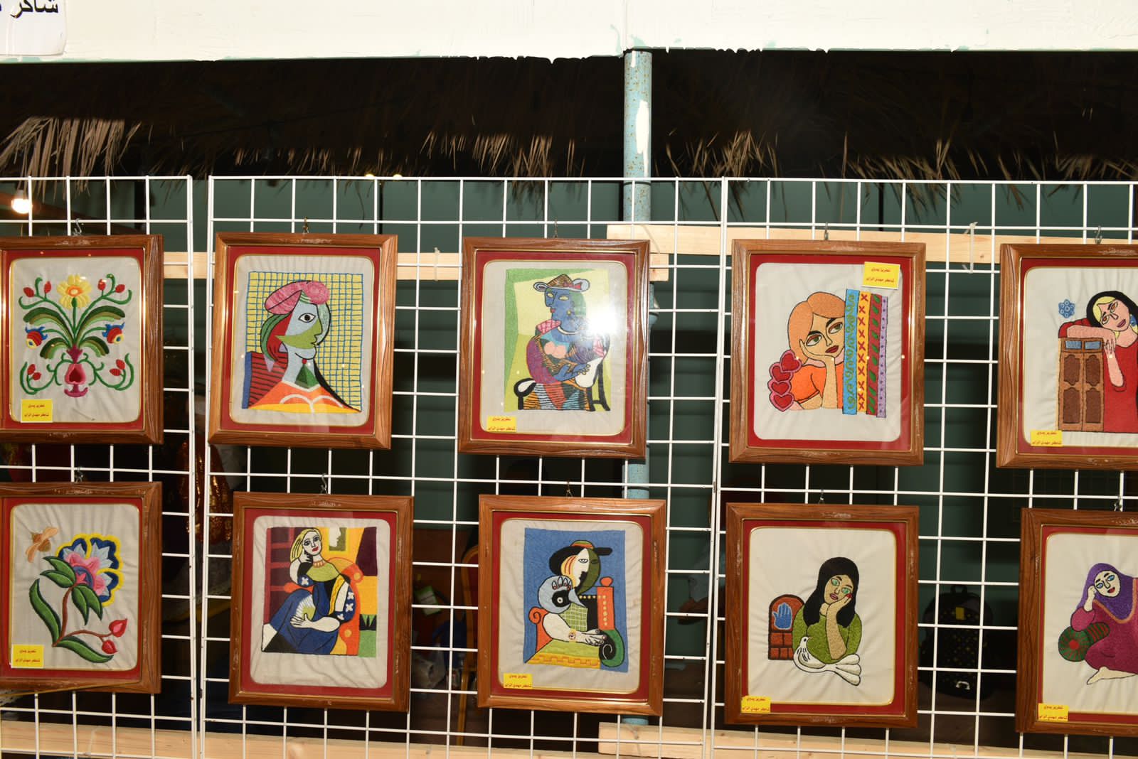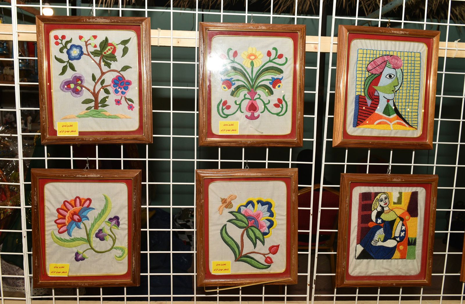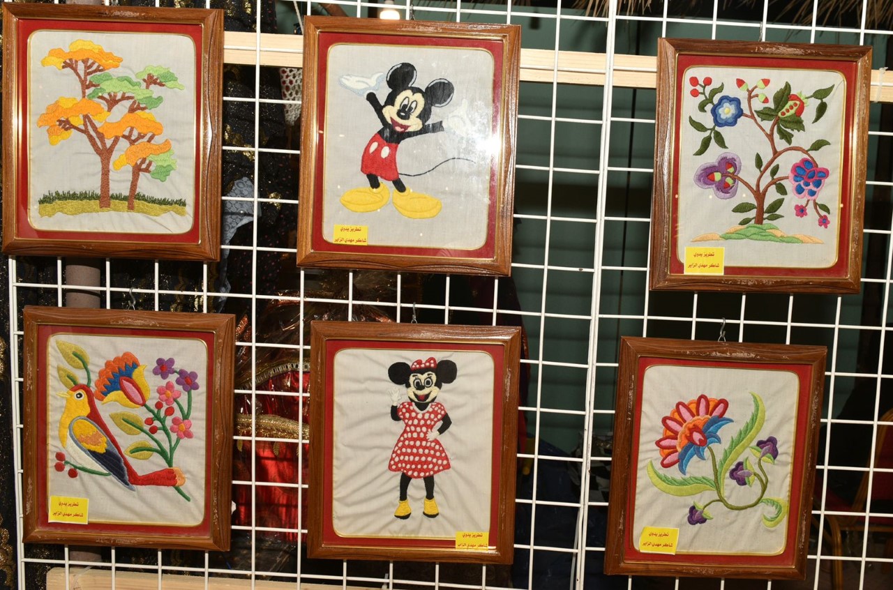 وعرض 23 لوحة لرسومات متنوعة مُطرز بيديه بواسطة الخيط والإبرة.