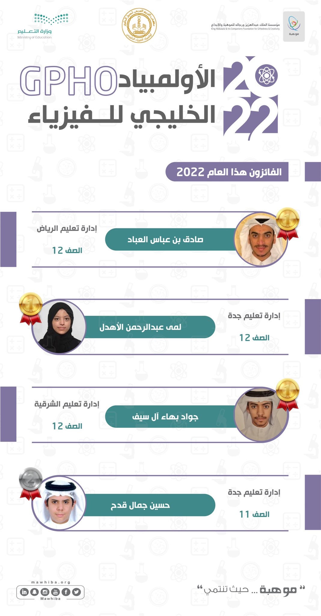 حقق المنتخب السعودي للفيزياء المركز الأول في منافسات أولمبياد الفيزياء الخليجي الخامس «GPho» 2022م بفوز جميع أعضائه بأربع ميداليات، ثلاث منها ذهبية، وفضية واحدة.