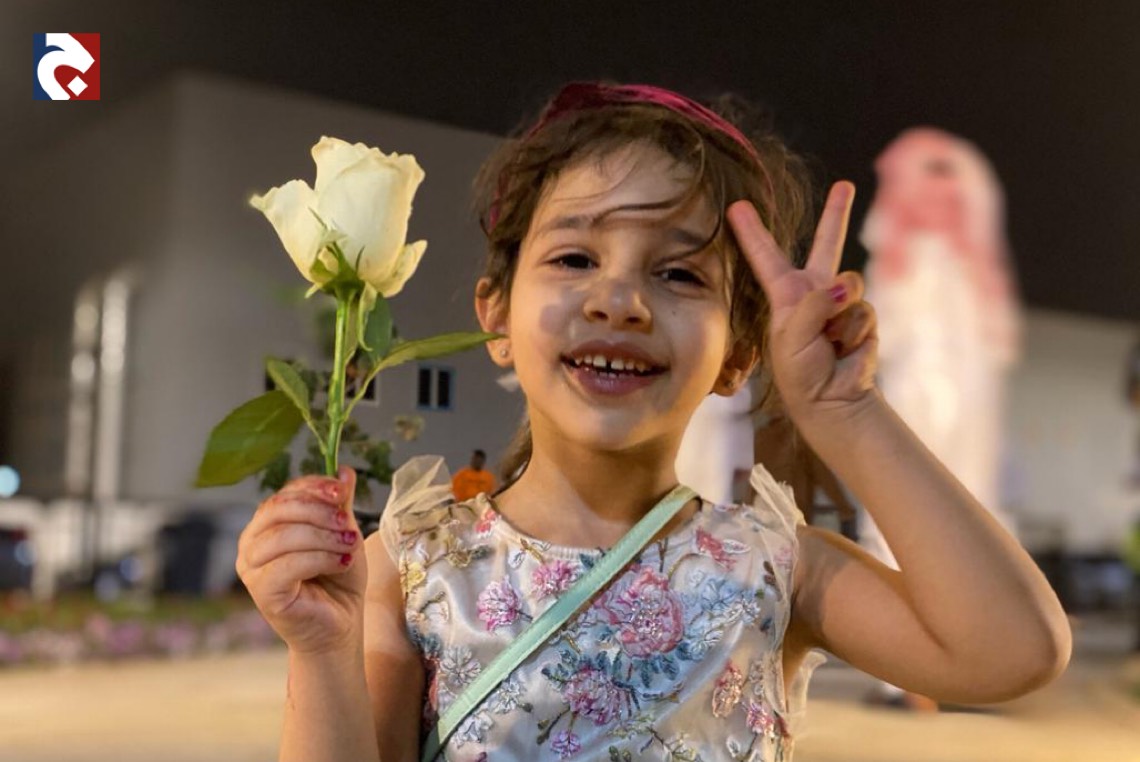 بوجوه مشرقة تعلوها الابتسامة، وقف أطفال مهرجان الزهور في موسمه الثاني أمام عدسة الكاميرا، معبرين عن سعادتهم بالأجواء الممتعة.