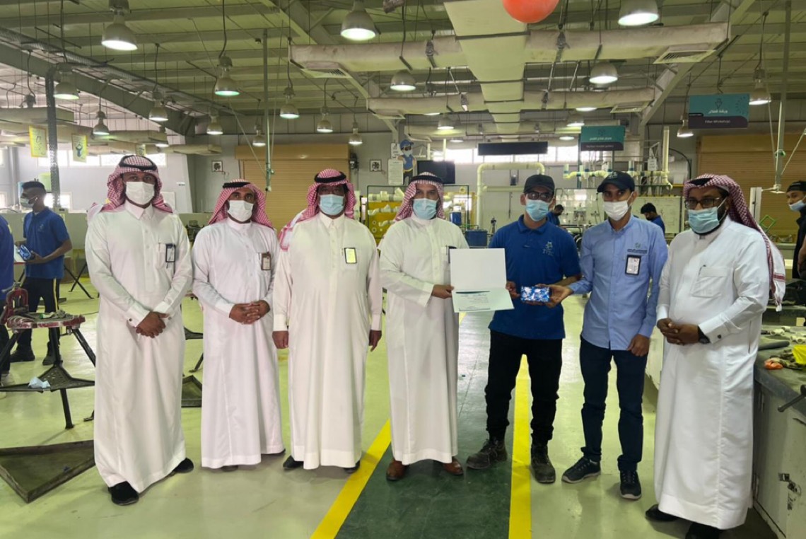 وفي نهاية اللقاء تم تسليم شهادة شكر وتقدير وهدية تذكارية للمتميزين من مستفيدين مركز التأهيل الشامل الذين تم تدريبهم بالمعهد الثانوي الصناعي كمبادرة من إدارة المعهد الصناعي الثالث.