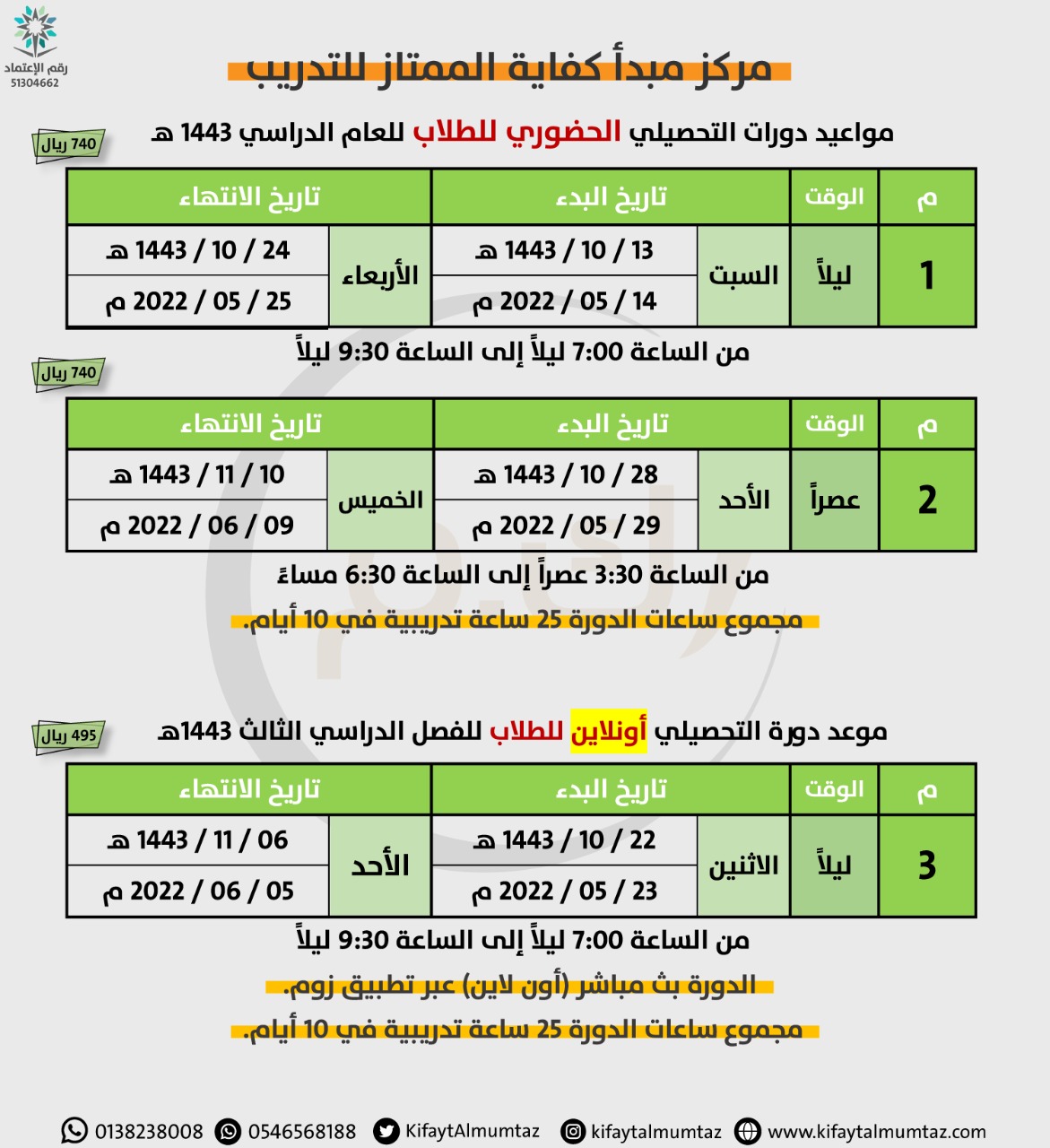 مركز مبدأ كفاية الممتاز للتدريب بإشراف الأستاذ ناصر المسباع يعلن عن استمرار التسجيل لـ ”أقوى دورات الموسم“ للفصل الدراسي الثالث
