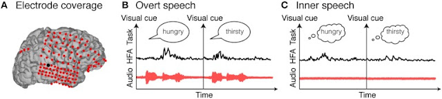 لاحظ الباحثون عدة أنواع من ترددات النشاط التي تصدرها مناطق الدماغ المختلفة عندما يتكلم هؤلاء المرضى، إما شفهيًا أو داخليًا [بينهم وبين أنفسهم].