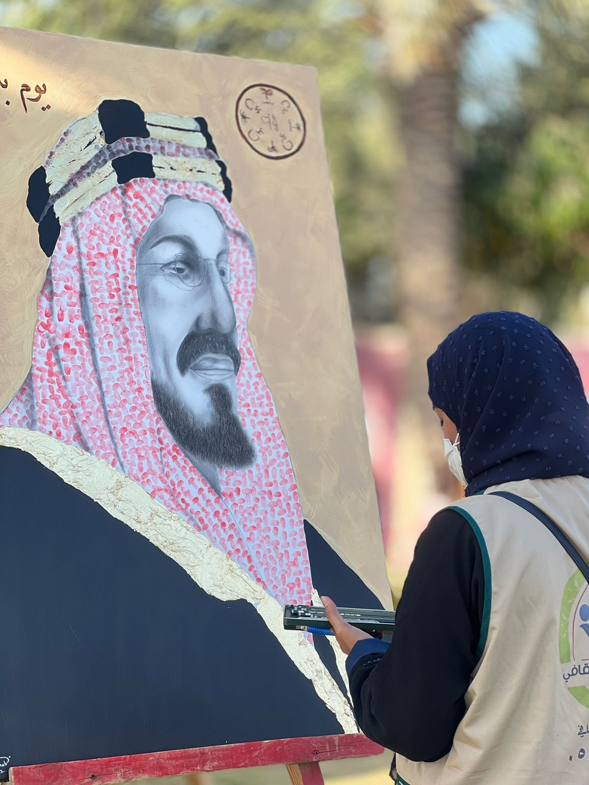وشاركت التشكيلية الصالحي بالرسم المباشر لصورة بورتريه، بجانب مشاركتها بلوحة ملكة بريطانيا صنعتها بعدة خامات، دمجت بها الخرز الملوّن والقصاصات القماشية.
