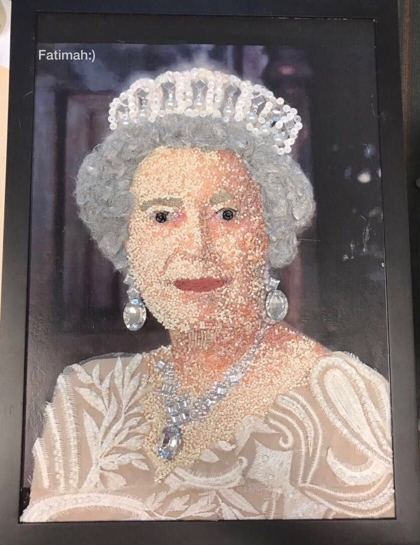 الملكة «إليزابيث» بالأقمشة والخرز في الأحساء