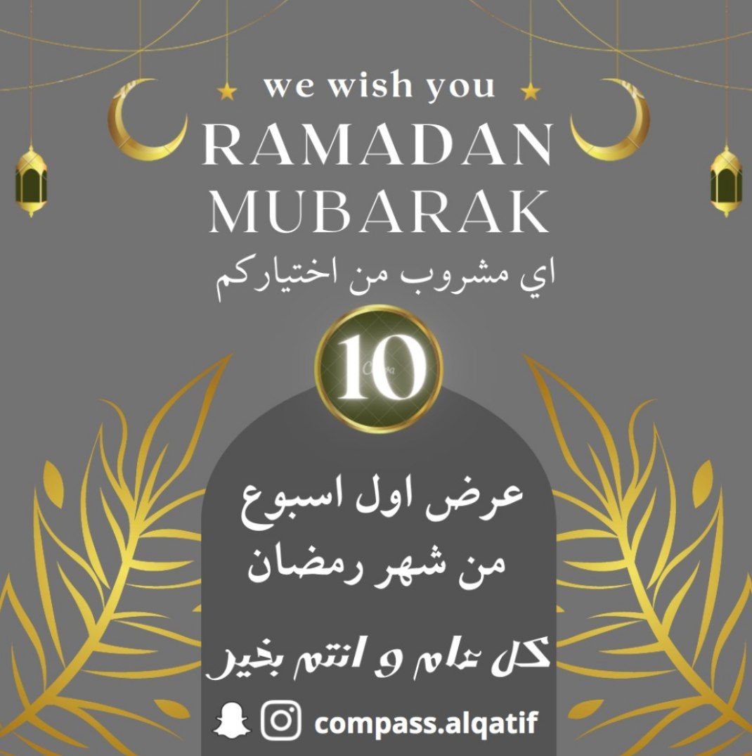 ولجميع زوارنا هذا العرض المغري في أول اسبوع من شهر رمضان ”أي مشروب من اختياركم“ ب10 ريال بس