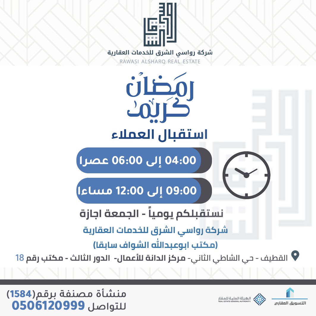 لاتتردد بزيارة "شركة رواسي الشرق للخدمات العقارية" واخذ موعد لضمان جودة الخدمة المقدمة