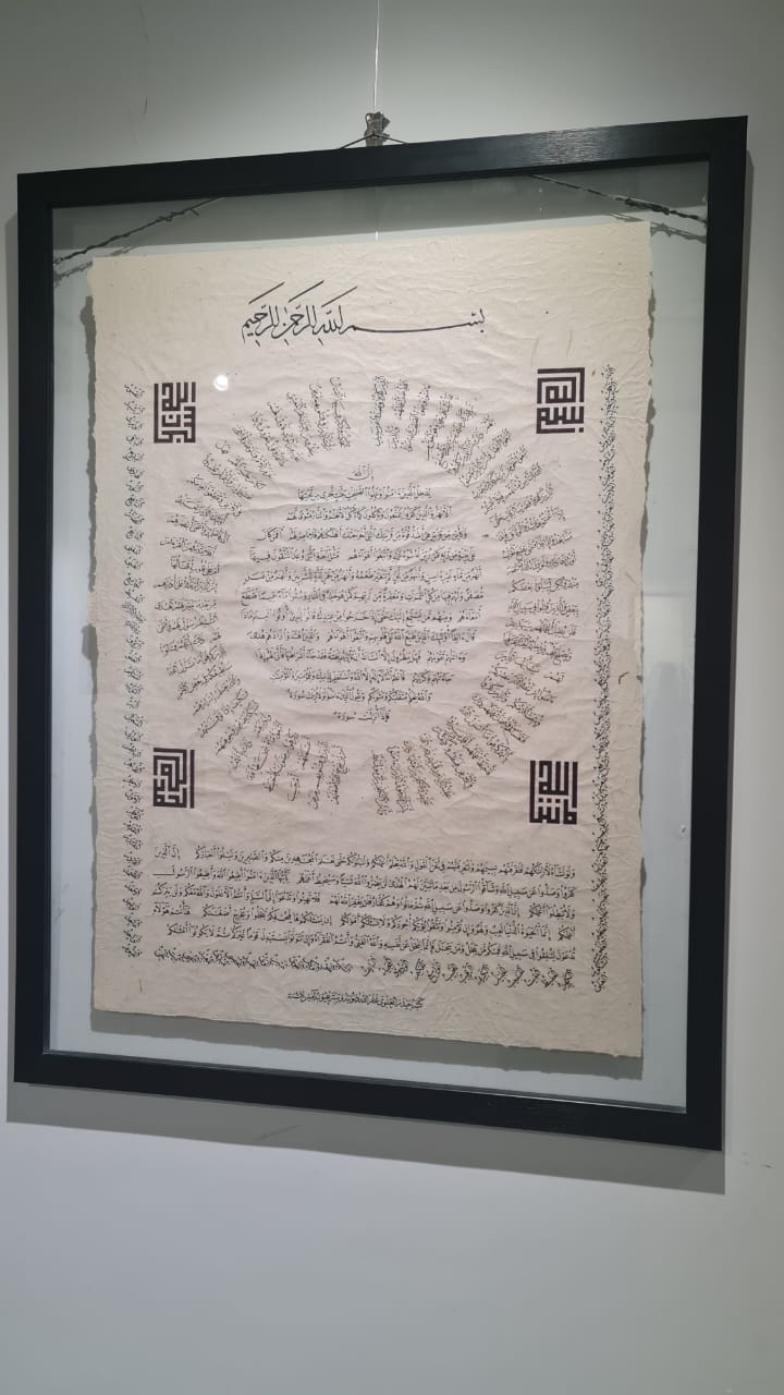 وتابع بأن هنالك مشاركه للوحات مزخرفه ومن أكثر ما تميز به المعرض هو مشاركة الناشئ الخطاط الناشئ ذوي ال11 عامًا حسن بزرون.
