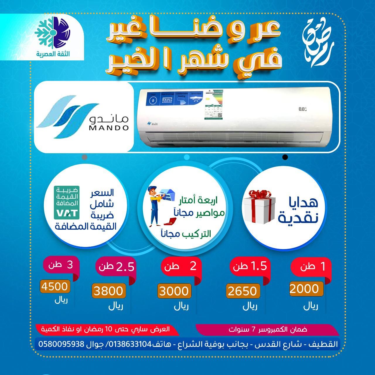 عروض وهدايا نقدية مع كل مكيف في شهر رمضان المبارك في «الثقة العصرية للتكييف»