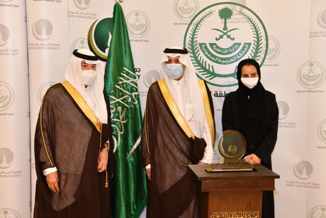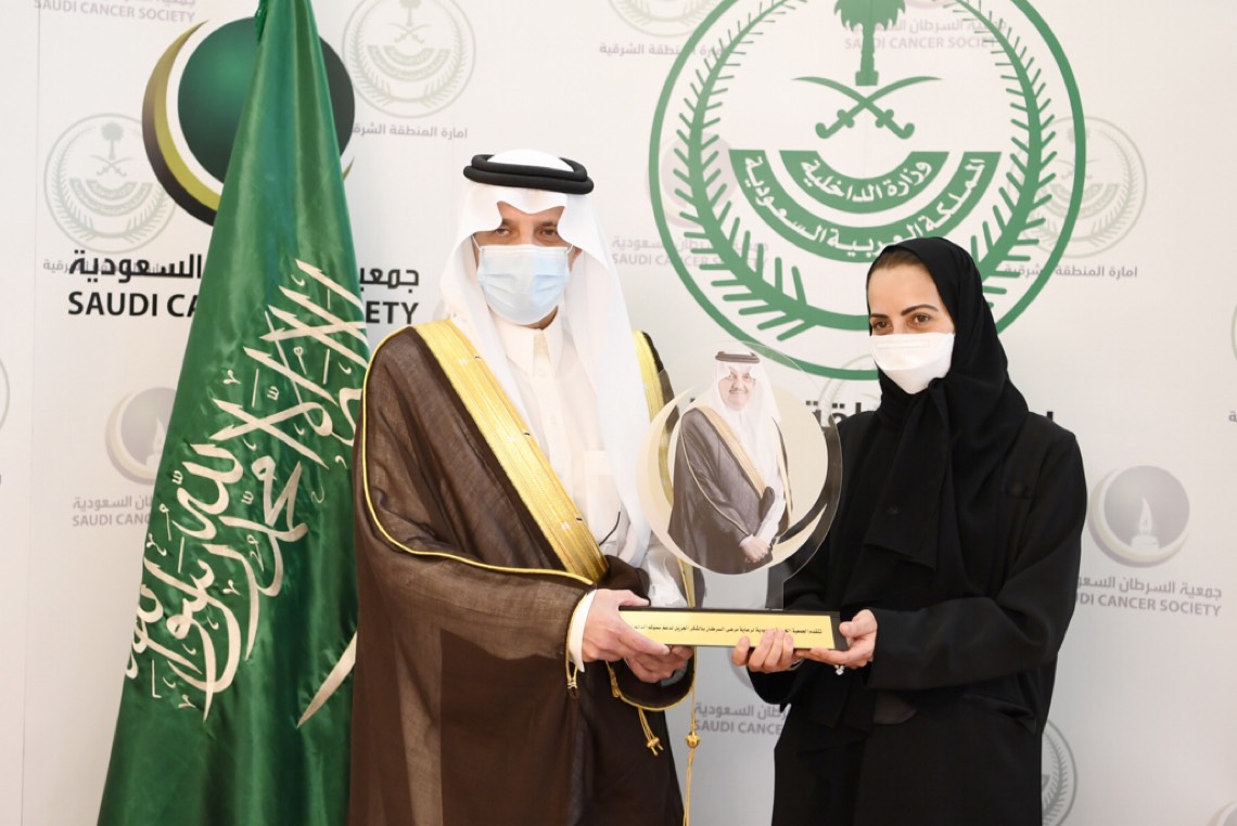 ثم قدمت رئيس مجلس ادارة جمعية السرطان مي الجبر درع تذكاري لامير المنطقة الشرقية.