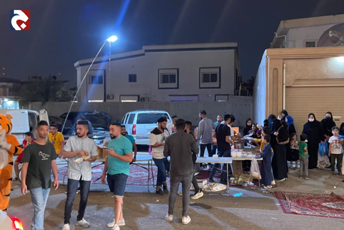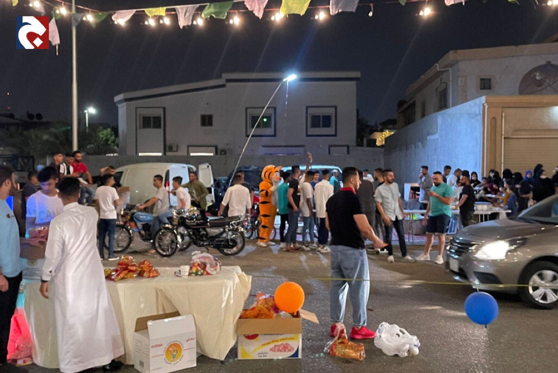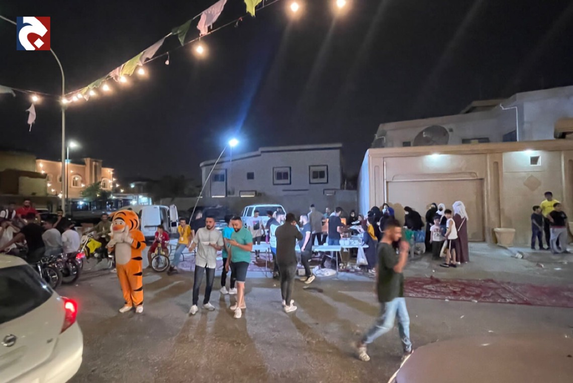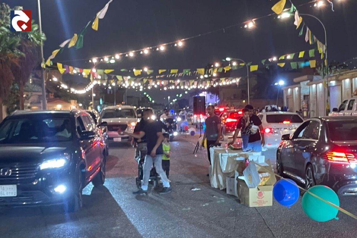 في المساجد والحسينيات، بينما يتجول الأطفال بين المنازل لجمع الحلويات والألعاب وأنواع من التوزيعات.