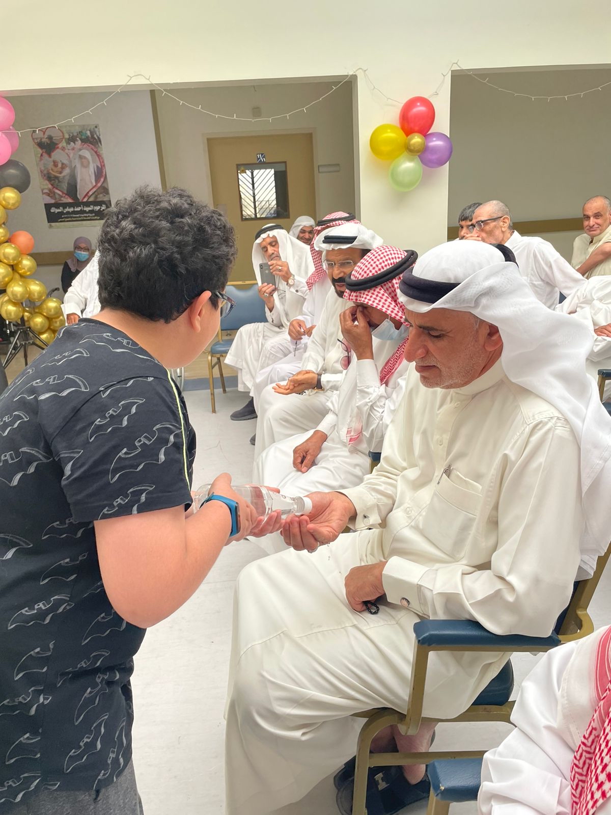 وشارك في الاحتفالية مع النزلاء من المسنين والأشخاص ذوي الإعاقة، مجموعة من أبناء المجتمع المحلي، وأهالي النزلاء، وأصدقاء المرضى، ومجموعة «مشاة سيهات»، والفنان عبدالعظيم الضامن، والشاعر رضا الزواد، والشاعر أحمد الجضر.