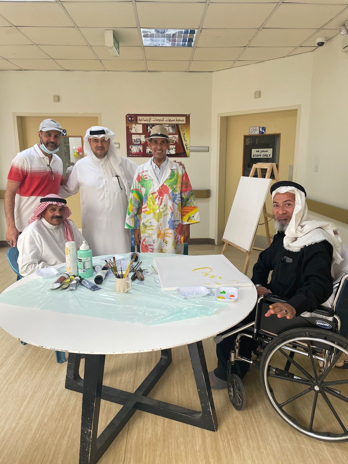 فيما شارك الفنان الضامن بمشاركة بعض النزلاء في رسم لوحات فنية، عبر فيها عن شكره واعتزازه وتقديره لإدارة المجمع بمشاركتهم النزلاء المناسبات الجميلة ومشاركتهم هذه الفرحة.