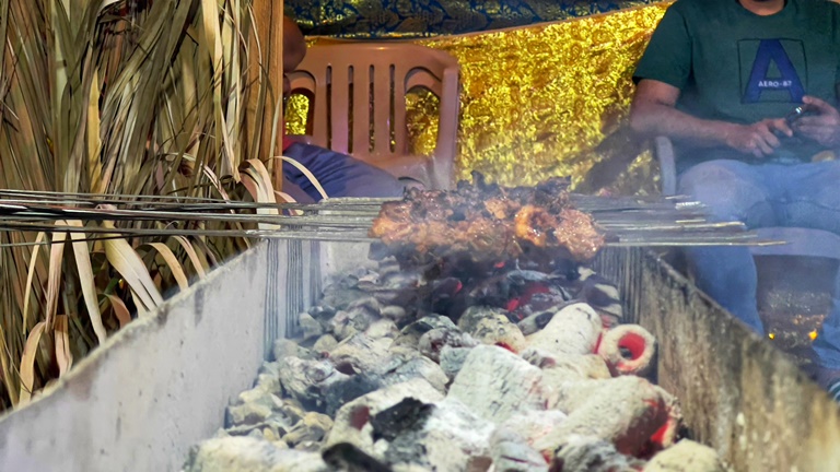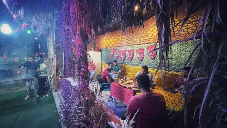 وعاد الشباب إلى تناول أسياخ التكة وأوصال اللحم والدجاج المشوية في تجمعاتهم بجانب منازلهم، وذلك بعد توقفهم خلال جائحة ”كورونا“، التي فرضت عليهم التباعد الاجتماعي كوقاية من الفيروس، ليكتفوا بالشواء داخل المنازل مع أهليهم آنذاك.