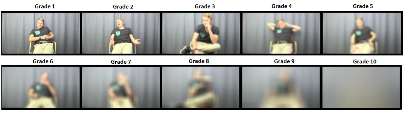 بالنسبة للدراسة، أعد تروجيلو وزملاؤه مكالمات فيديو بين عشرين زوجًا [20 مجموعة، كل مجموعة متكونة من شخصين] من المشاركين في التجربة. جلس كل واحد من المشاركين في غرفة منفصلة، وقيل لكل شخصين أن يجريا محادثة عادية «غير متكلفة» لمدة 40 دقيقة. أثناء المكالمة، قام الباحثون بخفض جودة مكالمة الفيديو في عشر خطوات متتالية، من مكالمة كانت بصورة واضحة جدًا إلى صورة ضبابية للغاية «انظر الصورة أدناه». قام الباحثون بتتبع كيف غير المشاركون طريقة كلامهم وإيماءاتهم خلال تلك المكالمة.