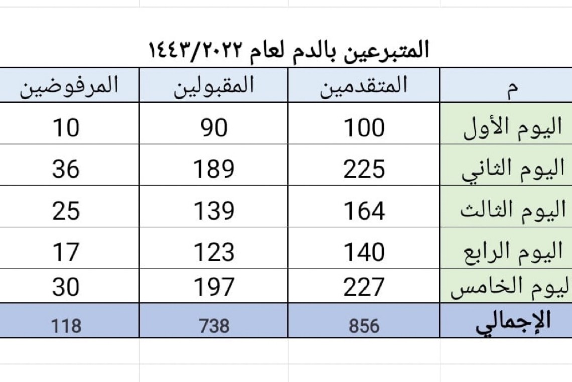 واختتمت الحملة التي جاءت تحت عنوان «بدمك تعمر الحياة» يوم أمس الخميس، بعد أن وصل مجموع المتقدمين خلال هذ الليالي 856 متبرعا بالدم، فيما تم رفض 118 متبرعا لأسباب صحية.