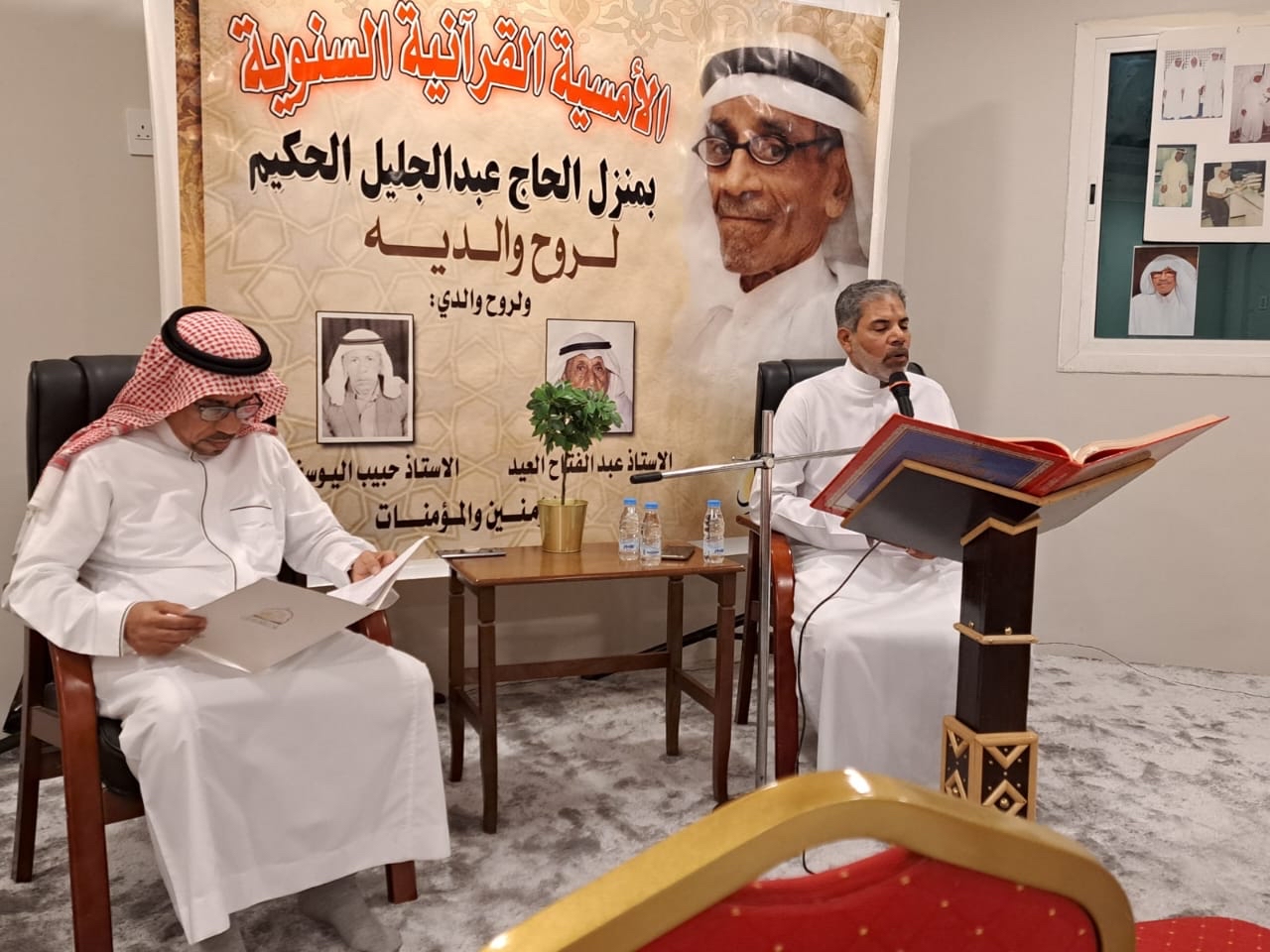 وشارك في إحياء الأمسية التي احتضنها منزل الحاج عبدالجليل الحكيم بحي الخليج، القارئ أسامة سيار، والقارئ عبدالجبار الشافعي أستاذ التلاوة والتجويد والرئيس السابق لمجلس إدارة مركز أنوار القرآن، والقارئ الحاج جعفر البوري، والقارئ المميز صاحب الإنجازات القرآنية على المستوى الإقليمي وأستاذ التلاوة والمقامات بمركز أنوار القرآن محمد بوسعيد، وأدارها حبيب اليوسف رئيس مجلس إدارة أنوار القرآن السابق.