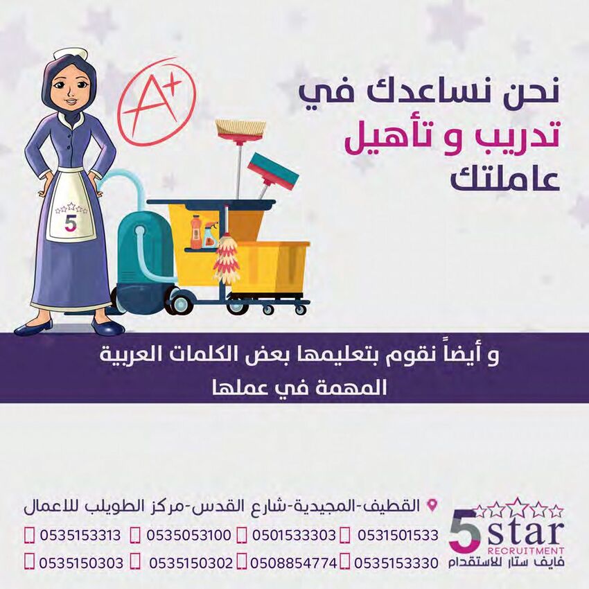 فايف ستار يساعدكم في جميع شؤون عاملتكم..