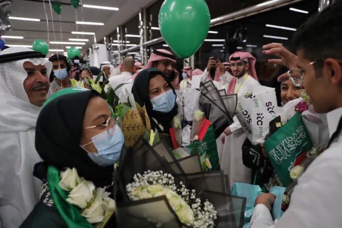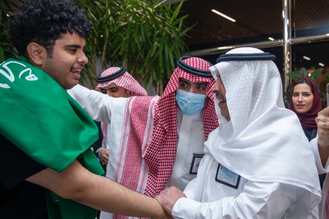 وصل إلى العاصمة الرياض أعضاء المنتخب السعودي للعلوم والهندسة المتوج ب 22 جائزة في معرض ريجينيرون الدولي للعلوم والهندسة آيسف 2022، برفقة رئيس مجلس إدارة مؤسسة الملك عبدالعزيز ورجاله للموهبة والإبداع ”موهبة“ المهندس فيصل الدويش، وسط استقبال حافل في مطار الملك خالد الدولي من مسؤولي التعليم ورجال موهبة والأهالي.