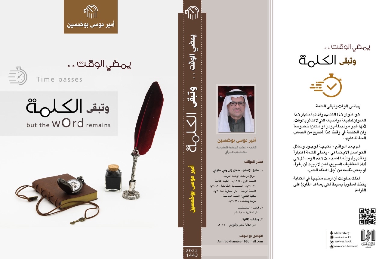 صدر حديثا للكاتب أمير بوخمسين كتاب «يمضي الوقت وتبقى الكلمة» وذلك عن مركز الأدب العربي للنشر والتوزيع - 2022. والكتاب الذي يعتبر الرابع من كتب المؤلف هو عبارة عن مقالات متنوعة في القضايا الثقافية والاجتماعية والاقتصادية وعن بعض جوانب حقوق الإنسان. كما يتضمن الكتاب بعض السير الذاتية لبعض الشخصيات الاجتماعية أو الدينية، ومقالات أخرى تتناول بعض النصائح والرؤى في المجالات العامة أو العلاقات الاجتماعية.