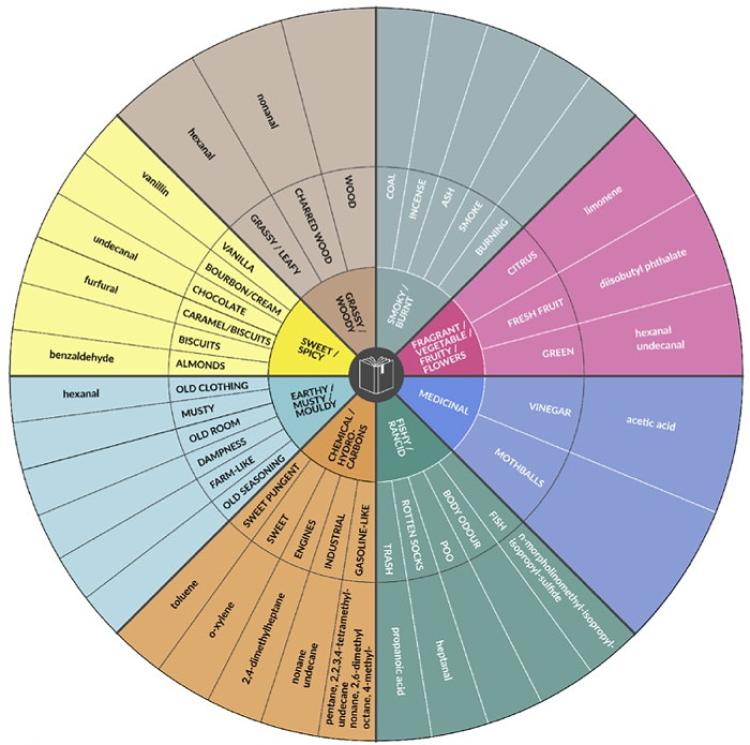 الكيمياء ضرورية لفهم سبب انبعاث روائح معينة من الكتب. تسمى المواد الكيميائية، التي تصدر هذه الروائح، بالمركبات العضوية المتطايرة «VOCs». هذه المواد الكيميائية المتطايرة تصبح نشطة عند وضعها تحت ضغط غاز عالٍ في درجة حرارة الغرفة العادية.