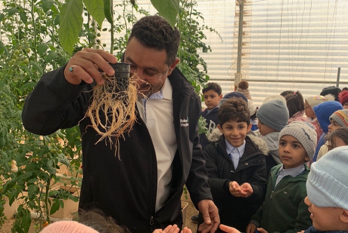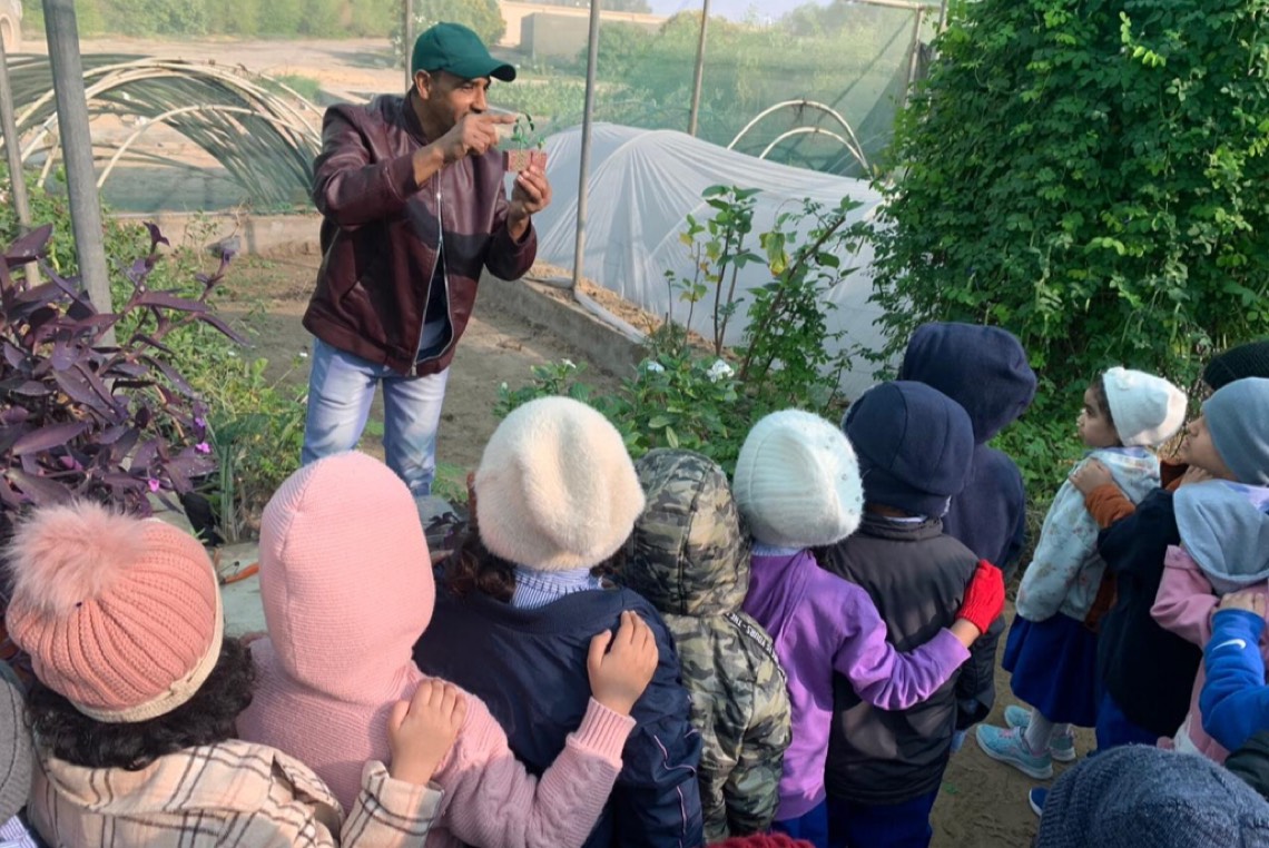 تعرف 122 طفلًا، ترافقهم 17 معلمة من ”روضة كوكب العبقري المدهش“، على طرق إكثار النباتات، وطرق الزراعة والعناية بالنباتات، وشرح مبسط عن الزراعة المائية، والبيئات المناسبة للزراعة.