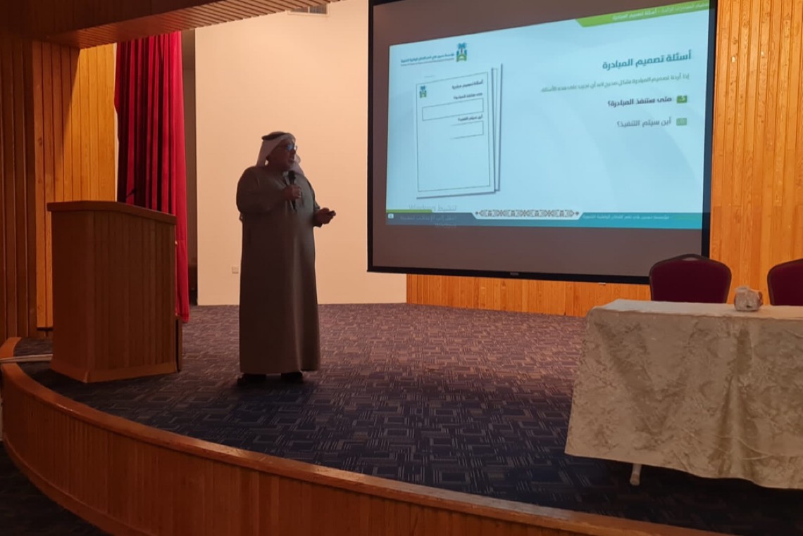 وطرح عدة أمثلة على تصميم المبادرات، بمعية الحضور، الذين شاركوه في التطبيقات الفردية، وفي مساحة النقاش المفتوحة.
