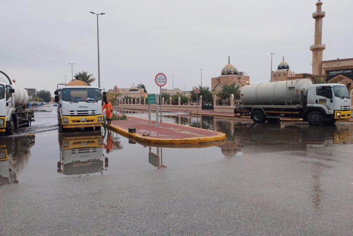 عبر 12 محطة و67 مضخة.. تصريف 734 ألف م3 أمطار بالقطيف
