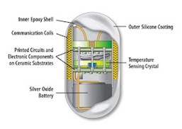 الشكل: مكونات الكبسولة القابلة للهضم التي تقيس حرارة أعضاء