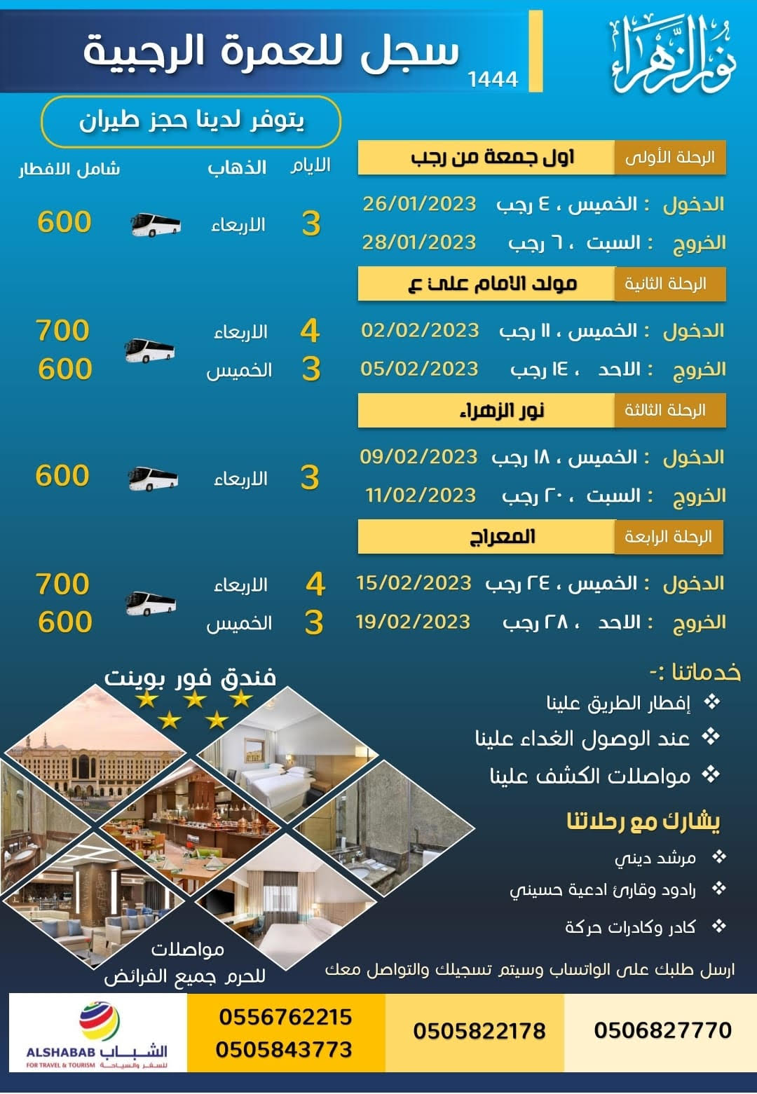 احجز لعمرتك الرجبية مع حملة ”نور الزهراء“