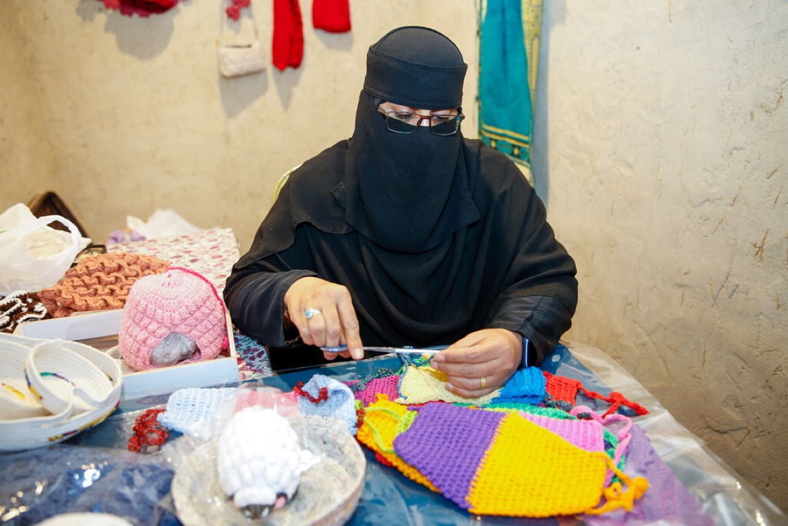 من جهتها، روت الحِرفية «سعاد الهاشم» قصة نجاح ومحبة لحرفتها، باستخدام «الخيط والإبرة» في صناعة «الطواقي» البيضاء والملونة، للصغار والكبار، موضحةً أنها بدأت تعلم الخياطة من الصف الخامس على يد معلمتها، باستخدام السنارة والخيوط، وحرصت على تطوير حرفتها من خلال الممارسة الطويلة، لأكثر من 25 سنة.