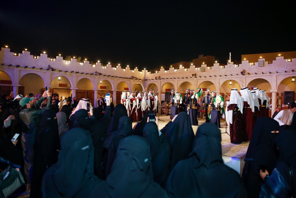 وتفاعل الحضور مع ألوان الفلكلورات الشعبية التي تشارك بها الفرق الشعبية، وفي مقدمتها العرضة السعودية، والقصائد الوطنية، والعرضة الدوسرية، والعرضة الأحسائية، بالإضافة إلى فنون «الهيدا، دق الحب، القادري، الرايح والخماري، العاشوري، والسامري، دزة المعرس».