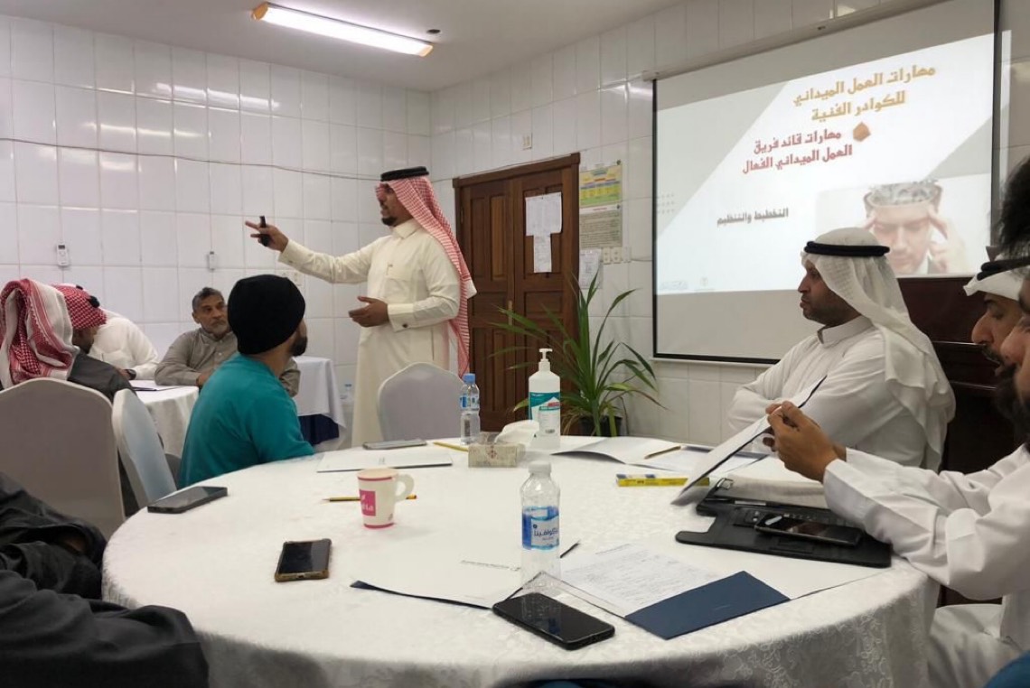 وبين أن النتائج المتوقعة من الدورة هي زيادة إثراء المتدربين بأساسيات بناء فريق العمل الميداني، والفرق بين القائد والمدير وأهمية التغذية الراجعة في تحقيق الأهداف للمتدربين في الدورة.