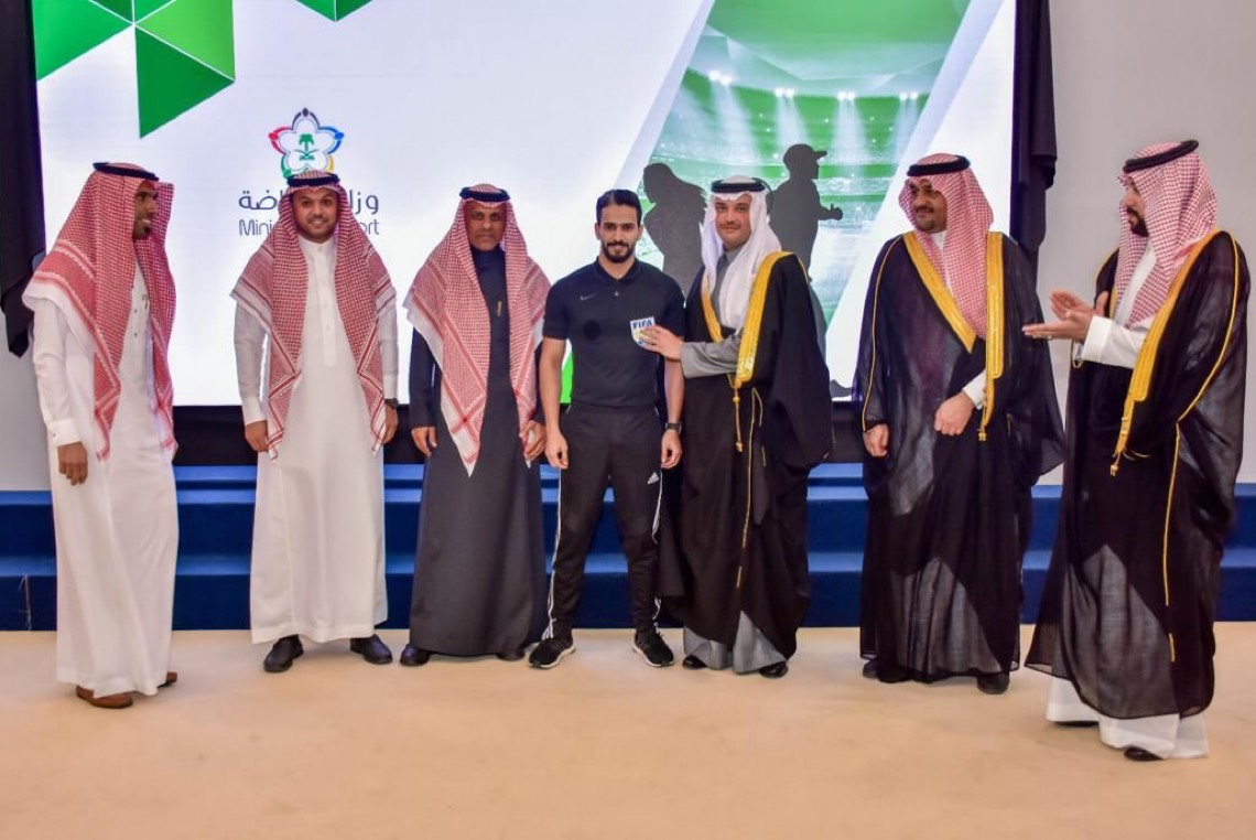 وقلد المحافظ الشارة الدولية للحكم الدولي سعد السبيعي، بمشاركة زملائه في اللجنة الحكام بمحافظة الأحساء، متمنيا له التوفيق في مشواره في تحكيم مباريات كرة القدم.