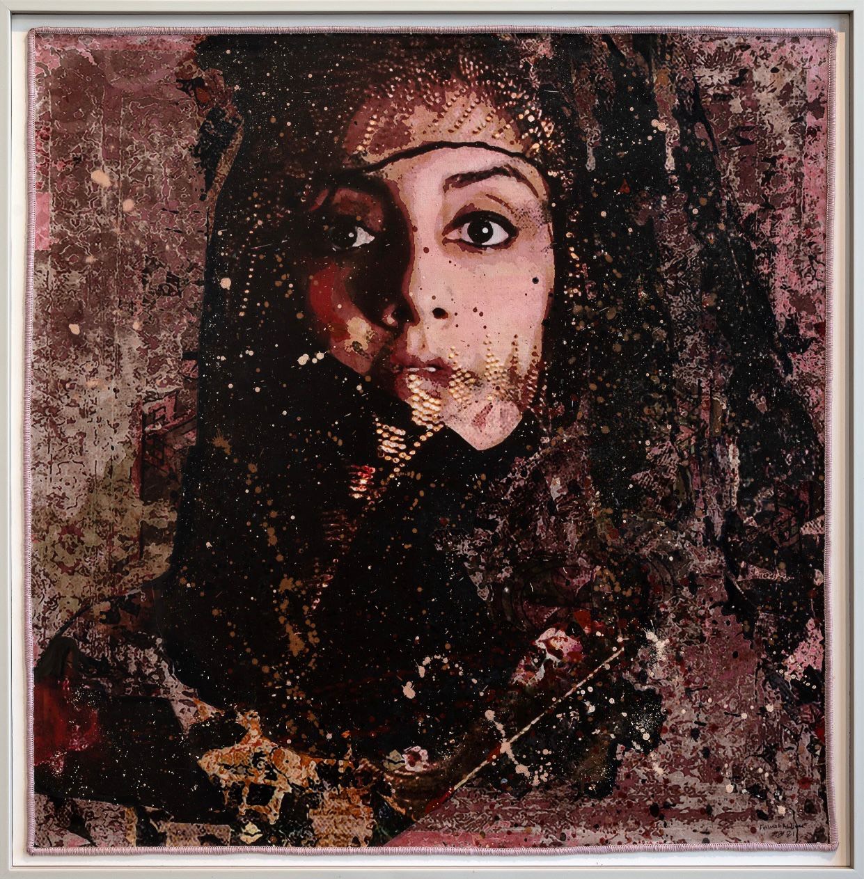 واستخدمت خامة الميكس ميديا من السجاد في لوحاتها، لتكن أعمال نوافذ لتاريخ الوطن والتعريف بشخصيات نسائية عالميين وتسليط الضوء على سيرتهم.