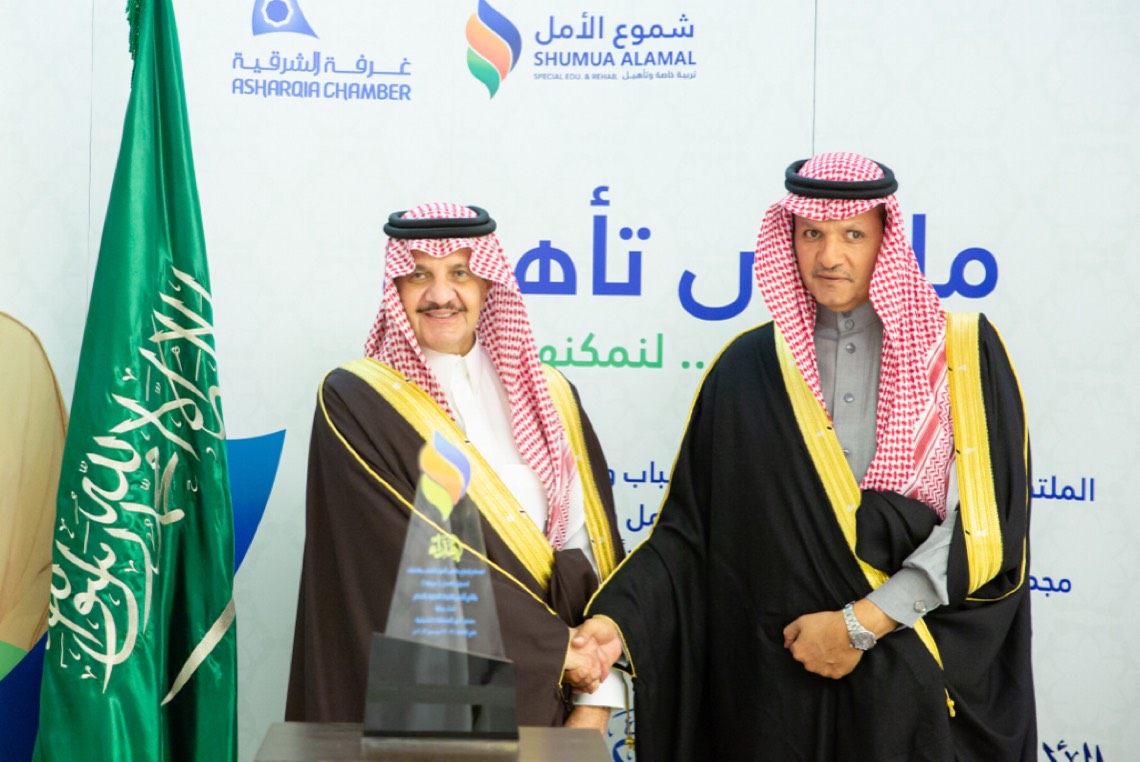 جاء ذلك خلال تكريمه، اليوم، بديوان الإمارة، الجهات الداعمة لملتقى تأهيل ذوي الإعاقة من الشباب والشابات الذي نظمته شموع الأمل بالمنطقة الشرقية، خلال الفترة الماضية.