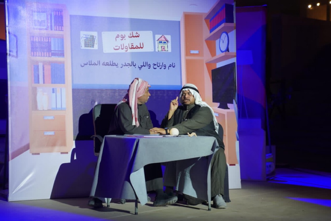 وتفاعل الحضور في مسرح الفعاليات مع تقديم العرض الأول لمسرحية ”ضمان مدى الحياة“، التي تحكي واقع بعض تجار العقار ممن يعملون بعشوائية ليقع بعض أفراد المجتمع في فخ تاجر لا يملك الخبرات الكافية لبناء بيت سليم، لتتوالى أحداث المسرحية.