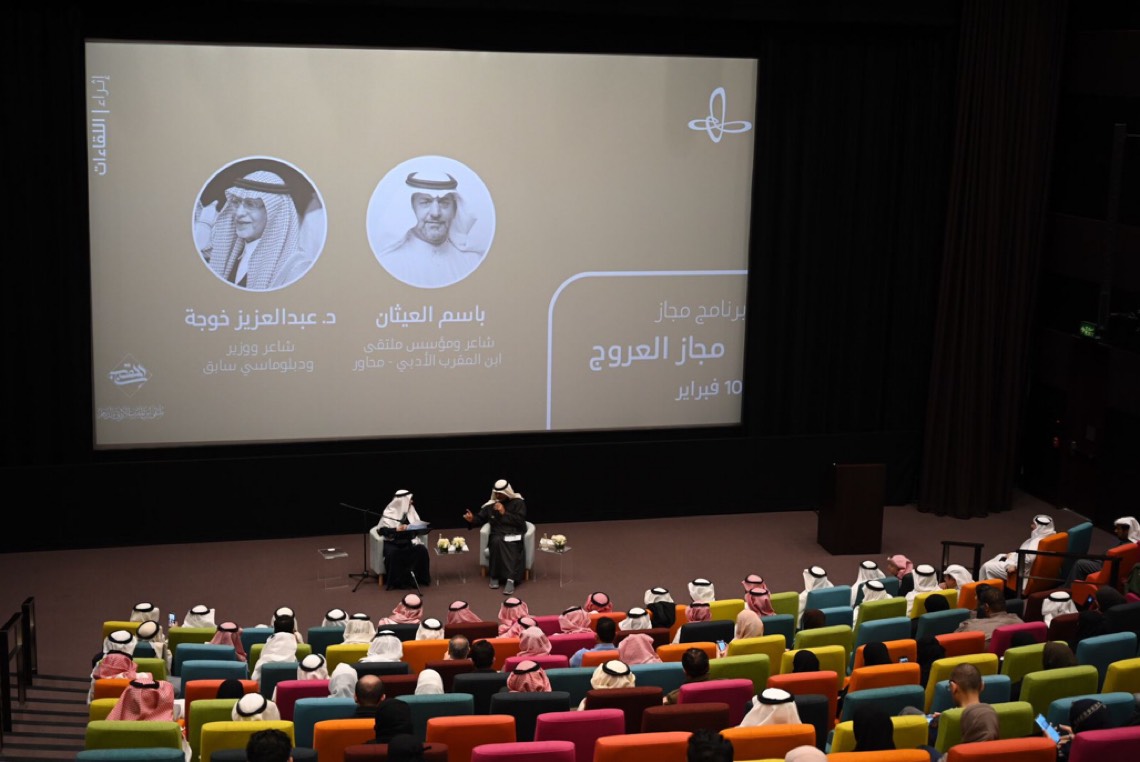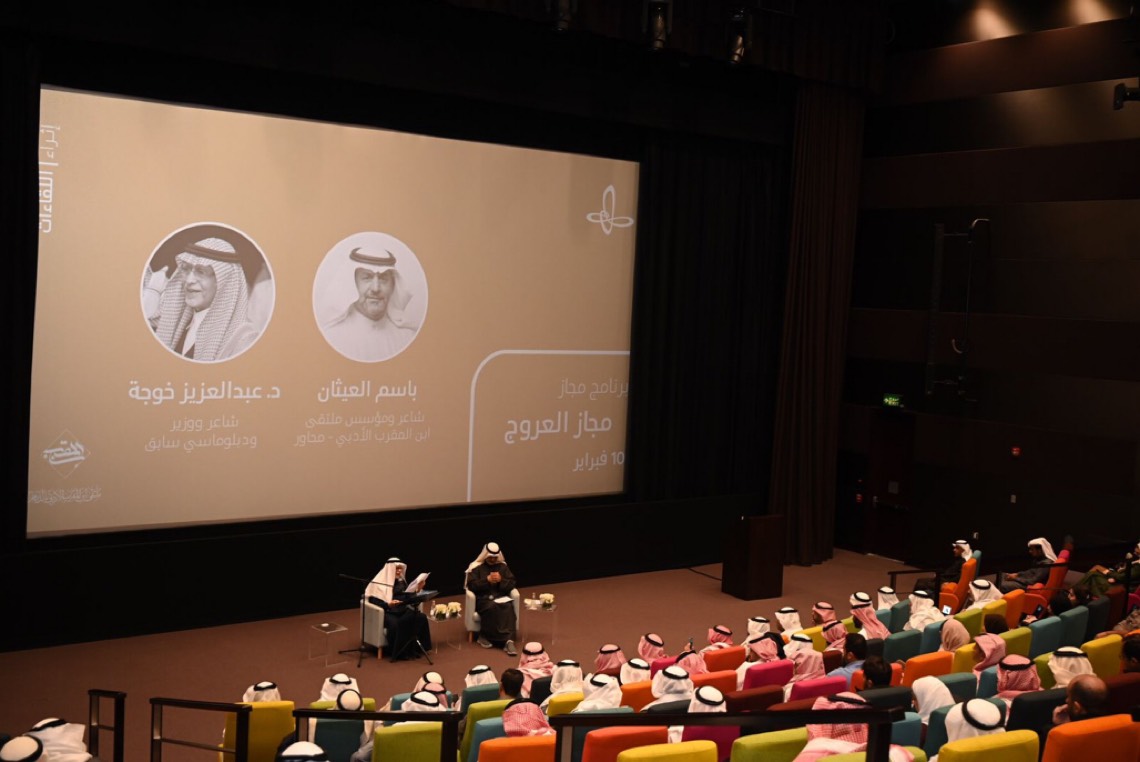 حلّق الشاعر الدكتور عبدالعزيز خوجه، في جولتين شعريتين خفيفتين، خلال الأمسية الشعرية ”مجاز العروج“، ضمن برنامج ”مجاز“، وشنّف بإبداعه فيهما أسماع الحضور بمقطوعاته الشعرية الوجدانية والغزلية والوجودية، وسط تفاعل الحضور إعجاباً بأدب وشعر ودماثة خلق الشاعر خوجه.