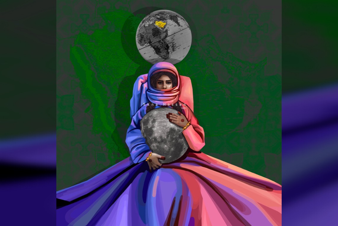«محور الكون».. سكنة حسن تجسد رحلة رائدات الفضاء السعوديات في لوحة