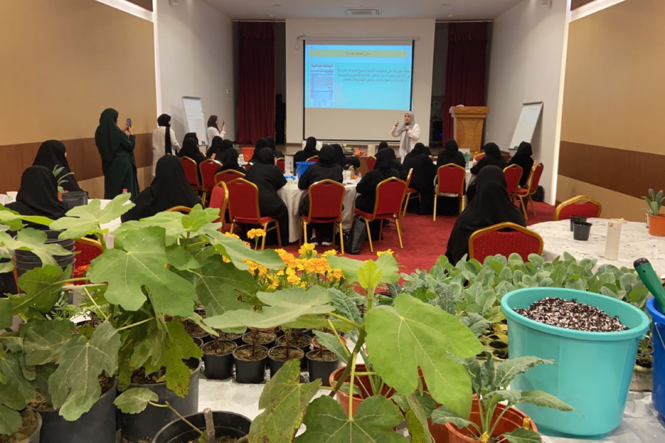 وتابعت بأنه تم إلقاء محاضرة عن الزراعة المنزلية والعناية بالنباتات من إعداد حورية أمباني من فريق ”بيتي بستاني“ ومحاضرة عن ”التسوق الصحي“ تضمن تدريب مبسط على قراءة المنشور الصحي للمواد الغذائية.
