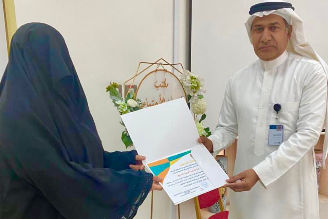 وقدمت ”الصايغ“ شكرها إلى إدراة المكتب لفتح المجال لها لتمكين الأسر المنتجة من مستفيدات الضمان الاجتماعي ونقل خبرتها لهن ليبدعوا في مجال السلطات وتمكينهم في سوق العمل.